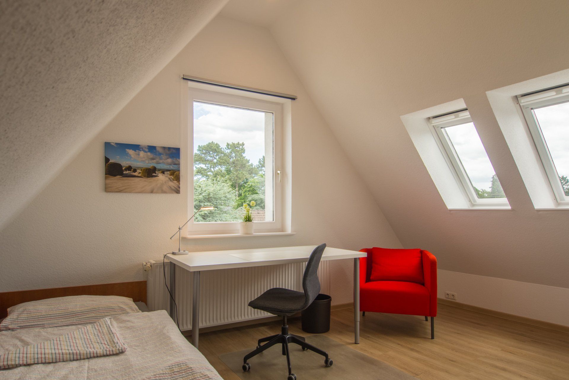 7 moderne, gemütliche Zimmer in citynaher Lage warten auf Sie. Egal ob Sie eine Weiterbildung machen, studieren oder auch sonst in der Messestadt Hannover verweilen wollen oder müssen. Bei uns finden Sie ein angenehmes zu Hause auf Zeit.